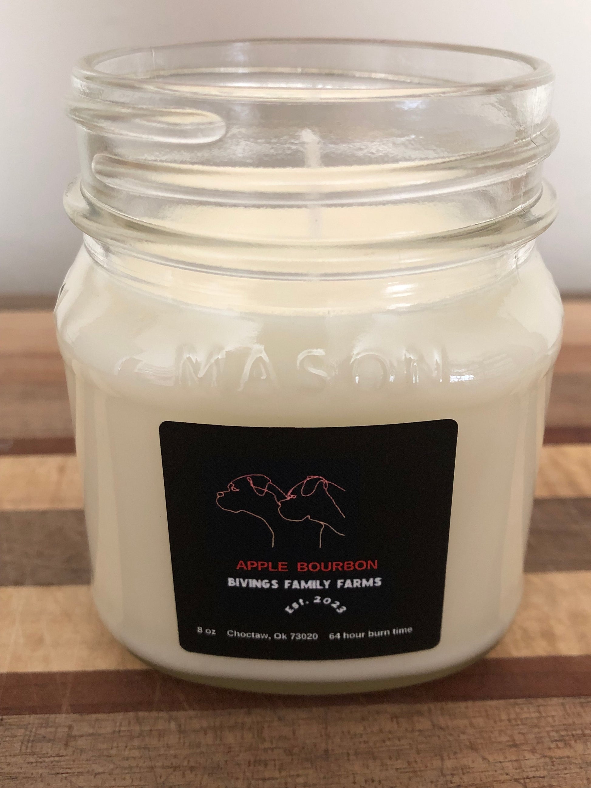 Handcrafted 8 oz Mason Jar Apple Bourbon Soy Candle